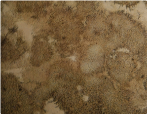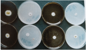 Und hier eine Reinkultur von Aspergillus fumigatus aus Topferde. Bei Kompostierungsstadien kann die Pilzflora bis zu 80% aus Aspergillus bestehen.
